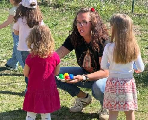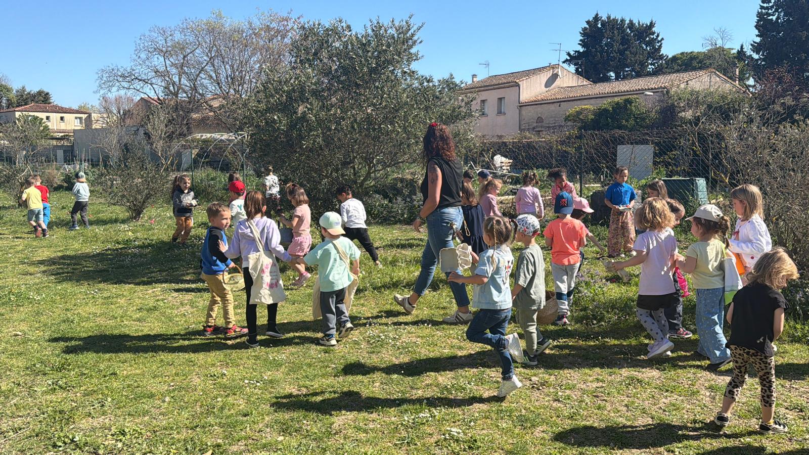 Les enfants de l’école maternelle à la recherche des précieux œufs