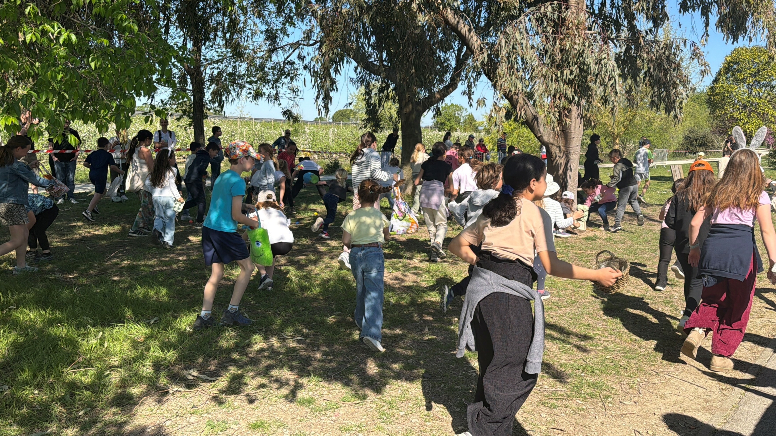 Les plus jeunes ont pu arpenter les « herbes hautes » à la recherche des précieux œufs colorés, tandis que les élémentaires se sont aventurés jusque « dans les bambous », où certains trésors étaient savamment dissimulés et notamment les œufs d’or, précieuse trouvaille souhaitée par tous. Une quête joyeuse, qui a conquis les familles venues en nombre.