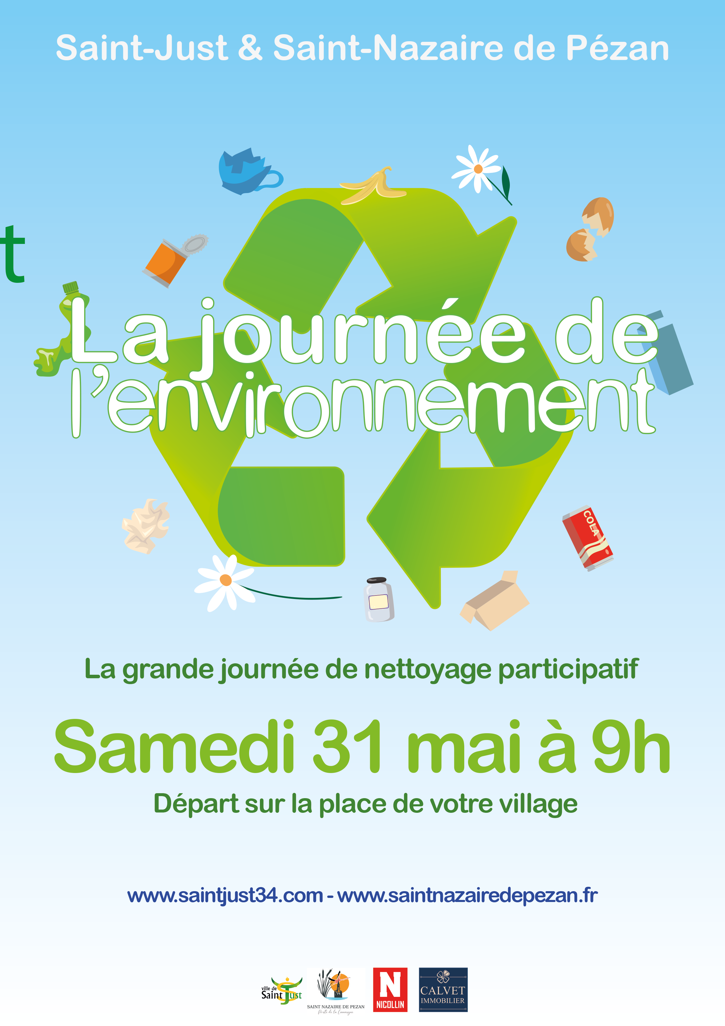 SAMEDI 31 MAI 2025, Saint-Just et Saint-Nazaire de Pezan s’unissent pour organiser la journée de l’environnement, la journée du grand nettoyage participatif.