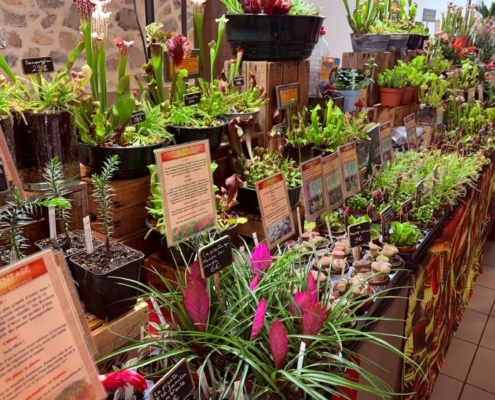 - un stand de plantes carnivores, très apprécié, notamment les droseras réputés efficaces contre les moustiques,